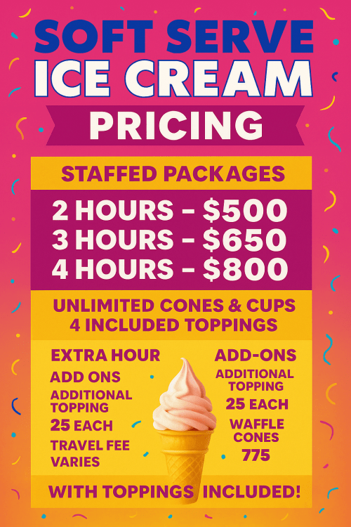 💲650 (includes unlimited cones/cups and 4–6 toppings)
