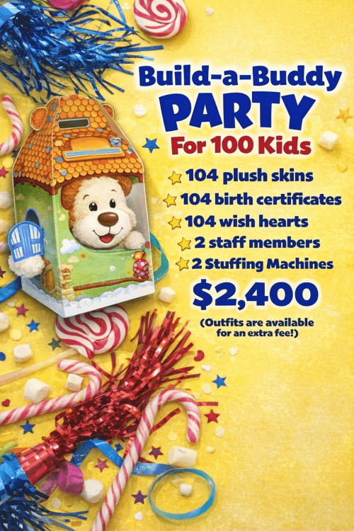 Bring a fun and interactive experience to your next event with our Build-a-Buddy Party for up to 100 kids! This exciting activity lets children create their very own stuffed animal while enjoying a memorable hands-on experience.