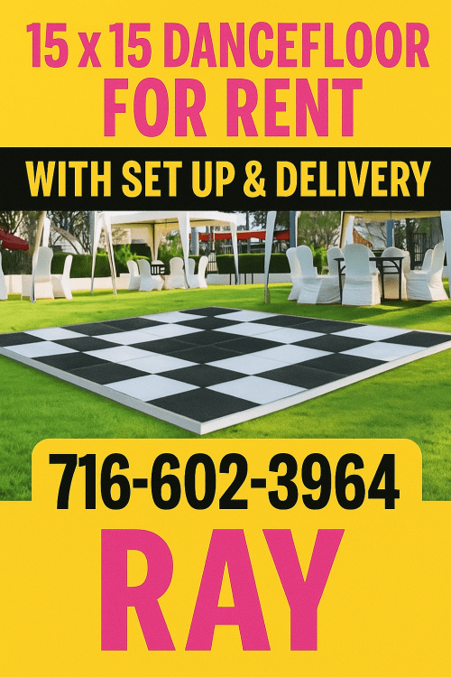 Create the perfect space for guests to celebrate, dance, and make lasting memories with our 15’ x 15’ checkered dance floor rental. This stylish black-and-white floor adds a clean, elegant touch to any occasion — whether you’re hosting a wedding, birthday party, graduation, corporate event, or backyard celebration.